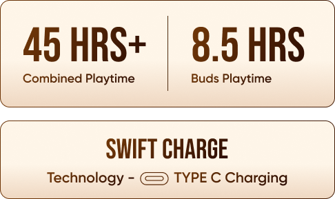 Designed to keep up with your active lifestyle. Whether you're commuting, working out, or simply enjoying your favourite music throughout the day, these earbuds have got you covered, eliminating the need for frequent recharging and ensuring uninterrupted audio bliss.