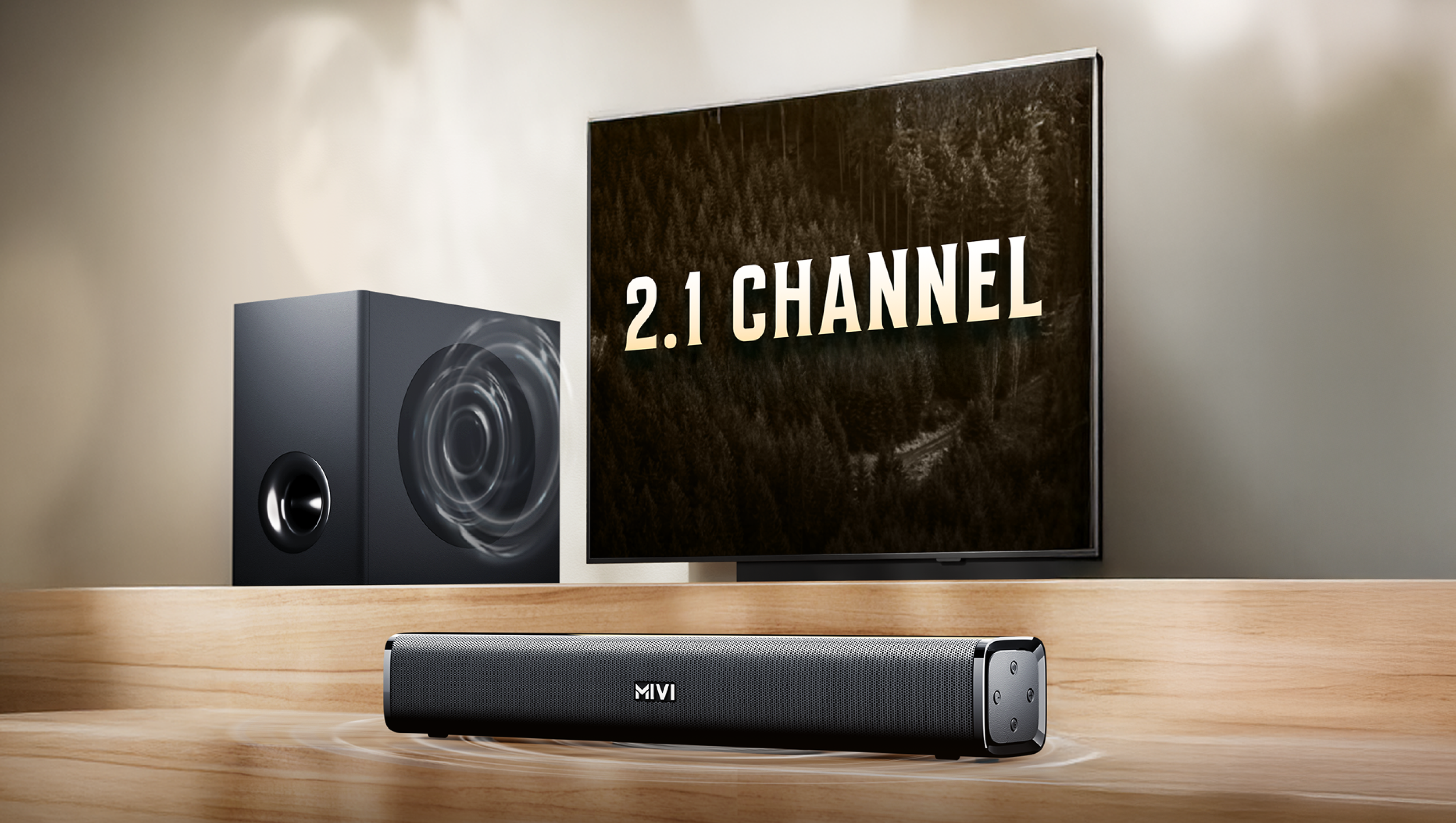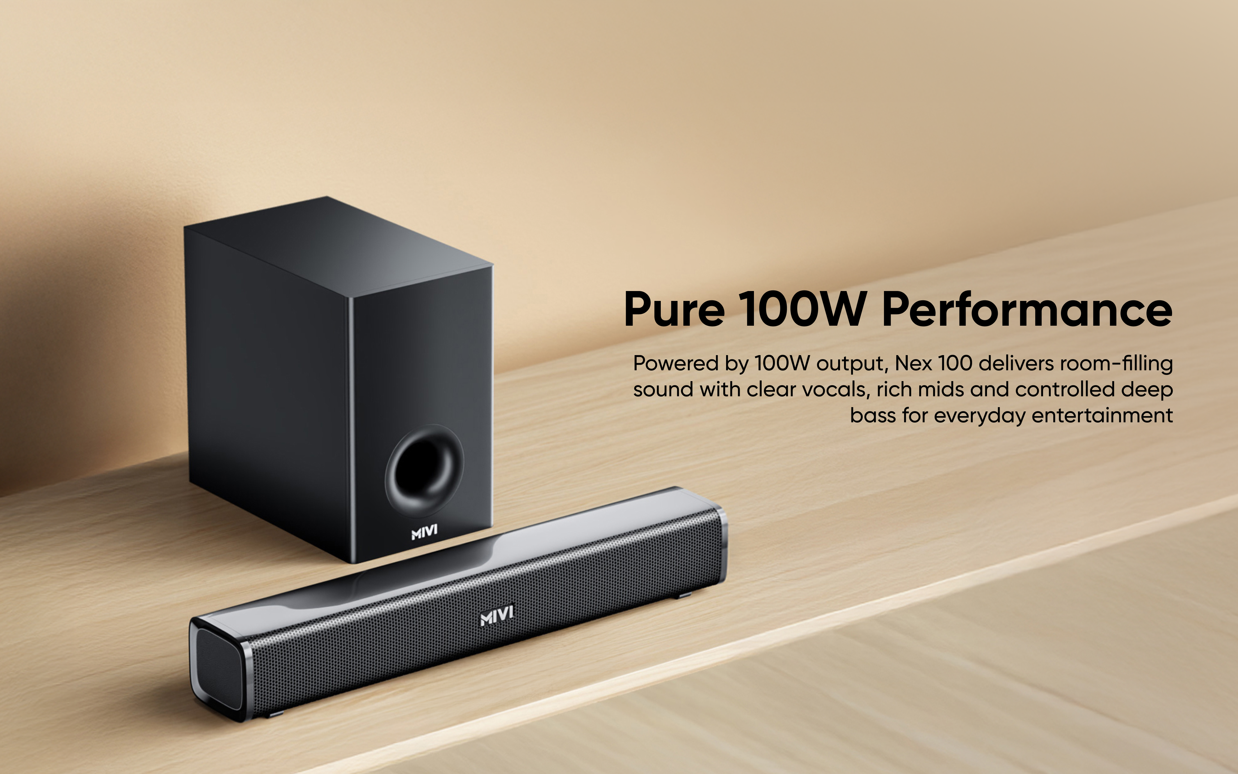 A 2.1 channel setup with a dedicated subwoofer delivers clearer vocals, wider sound and deeper bass for a more immersive experience.